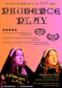 Prudence Play (or Sister Prudence is Not Gay!) stars a young catholic nun having an identity (gay-as-hell) crisis. From her fever dream of tap dancing, or her hot and heavy thoughts during the Lenten fish fry, you understand…she’s having a moment. She’s waking up to feelings for a fellow sister, wrestling with her every belief, and confessing a lot (perhaps too much) to the order’s new priest. As memories from her past resurface and her dreams get more sinful, Prudence begins to question the voice in her head and is forced to confront her (horny) (gay) demons.